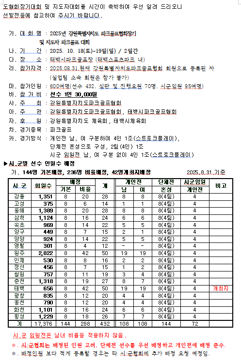 제12회 강원특별자치도 파크골프협회장기 및 지도자 대회요강
